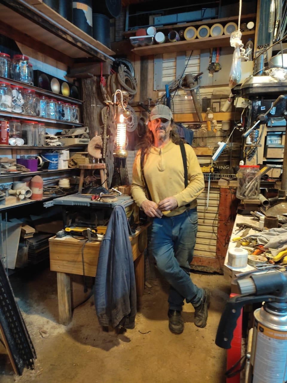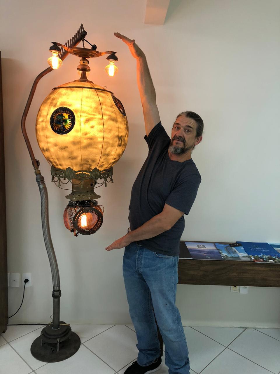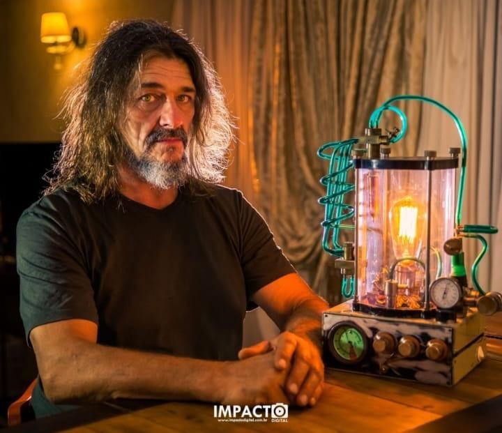 O artista transforma materiais descartáveis em luminárias, mesas, aparadores e esculturas de design inovador e artesanal por meio da técnica de Upcycling. Sua coleção utiliza madeira, driftwood, metais, sementes, pedras e peças industriais antigas, criando peças únicas sem uso de solda.