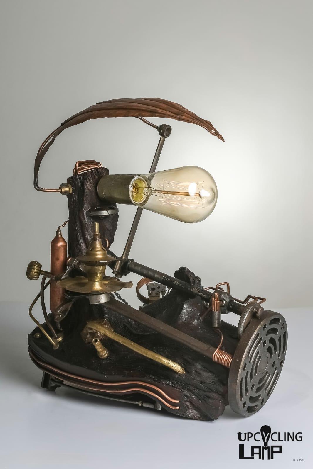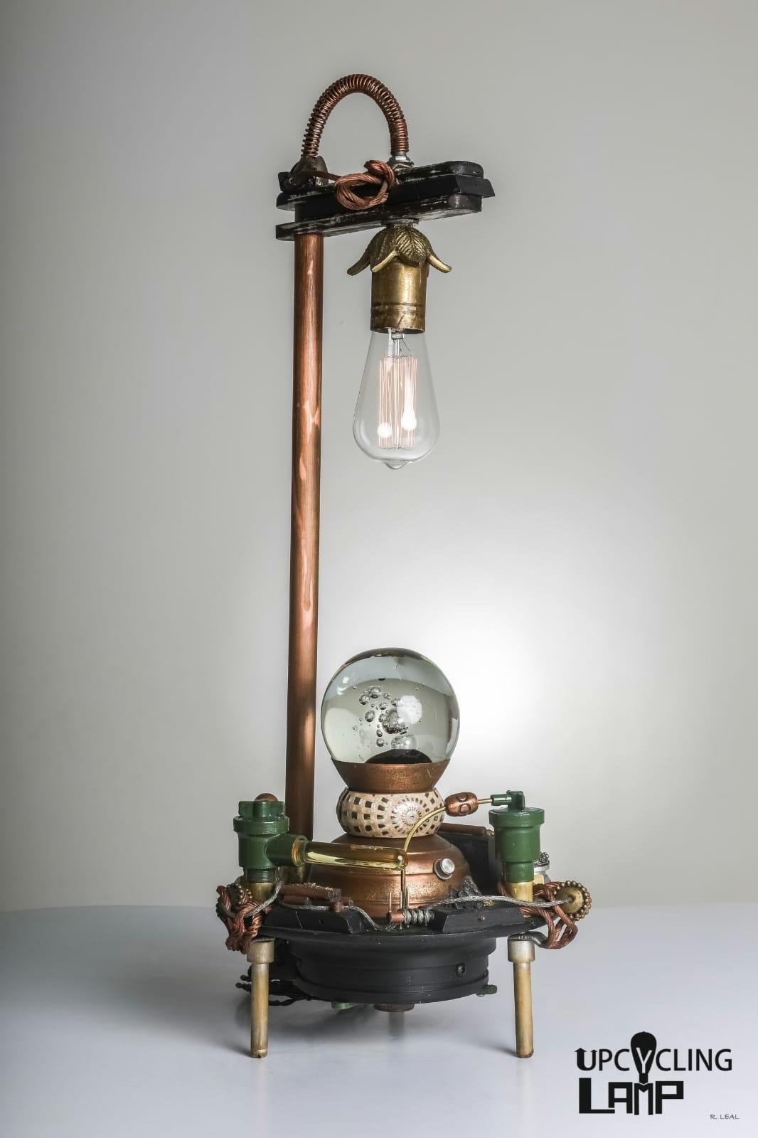 Luna| 2020 | Técnica Upcycling / Materiais: peça composta por aço inox, latão, cobre, iluminação reaproveitada como decoração da parte central.